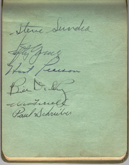 | This page was graced by two future Hall of Famers. A dominating pitcher in Lefty Gomez and an outstanding catcher in Bill Dickey. The book itself contains the autographs of over a half dozen future Hall of Famers. Player names that have been italicized down below denote Hall of Fame status and the biggest starts are yet to come on the pages immediately following this one. | |||||||||||||